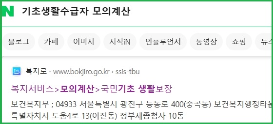 복지로 '국민기초 생활보장' 모의계산기