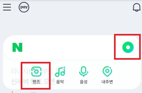 1. 네이버 검색창 오른쪽에 동그라미(렌즈 아이콘) 누릅니다.